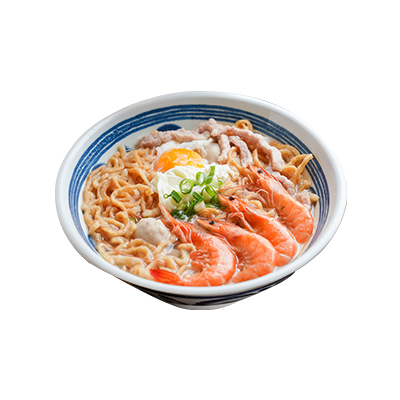 招牌鍋燒麵系列與日本食品大廠合作研製專屬湯頭,搭配四隻鮮蝦、手工虱目魚丸、滑嫩豬肉絲與洗選蛋,現煮麵條Q彈有勁,一碗吃得到鮮甜與誠意。