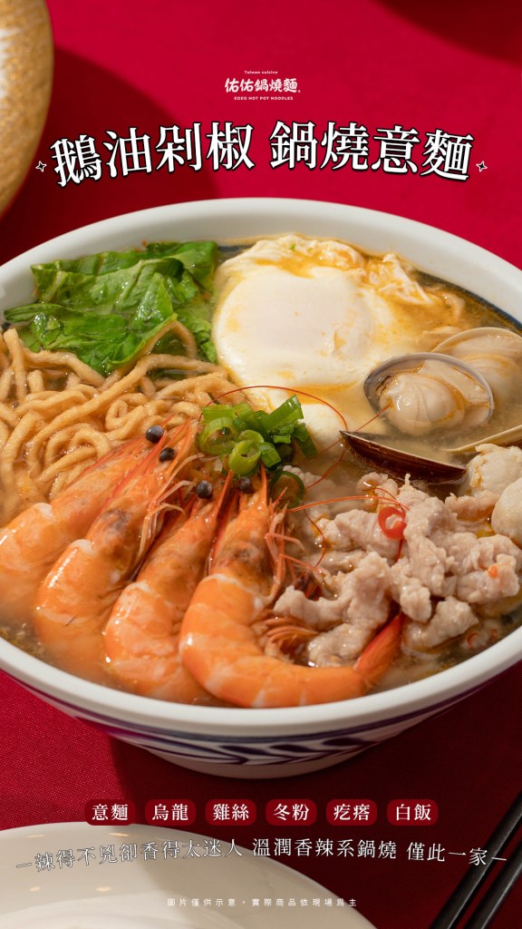 「佑佑鍋燒麵,台灣人的拉麵」,創立於高雄的佑佑鍋燒麵以「簡單、方便、好吃」為品牌精神,致力於將這道經典的南台灣美味推向全台灣乃至國際舞台。鍋燒麵於本質上可以稱之為「台灣人的拉麵」,以靈活多變的口味和豐富食材滿足不同需求,從意麵、烏龍麵到湯飯,每一口都傳遞著純樸與熱情。這碗熱騰騰的美食象徵著台灣人好客的精神,不僅是每個南台灣人童年時期的回憶,更是能成為國內外旅客感受台灣美食的一項全新選擇。